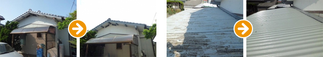 いつも大変お世話になっているお客様のご紹介で、O様邸の付帯塗装をご用命いただきました。付帯箇所は破風板・母屋(モヤ)・軒天井・小屋の壁と屋根(スレート)・庇の鉄部などの塗装です。