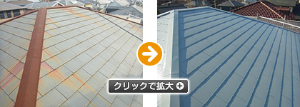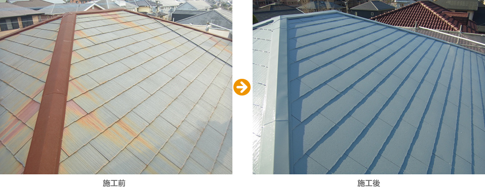 屋根は日本ペイントのサーモアイsi(遮熱塗料)をご提案させていただきました。 完成後にY様に仕上がりをご確認いただき、とてもご満足していただくことができました。